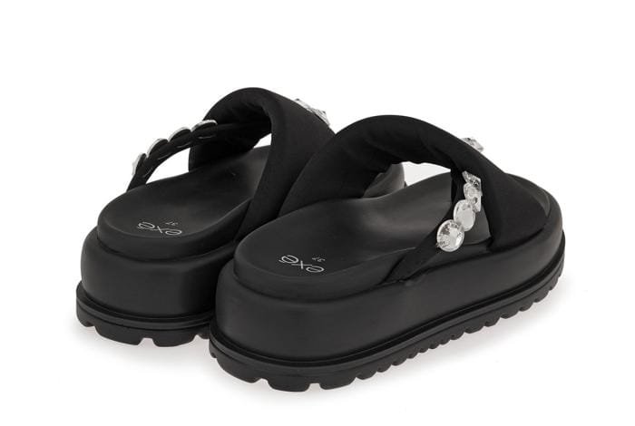 Sandali da donna con plateau, cinturino in tessuto decorato con pietre e suola spessa, firmati Favela.