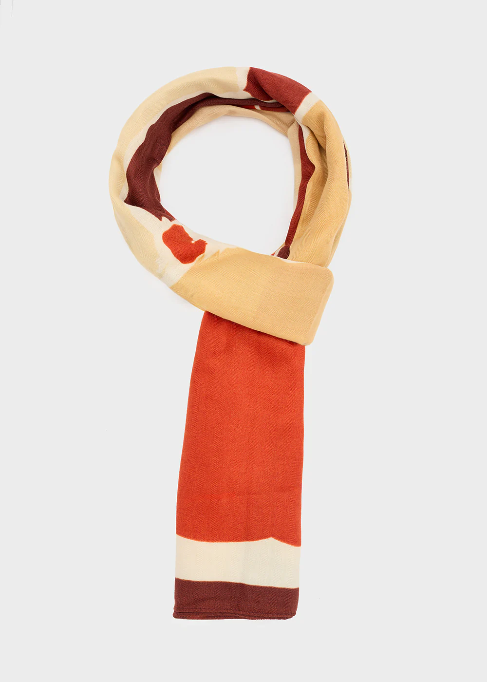 Foulard plissé a righe con design optical in arancione, nero e bianco. Ideale per donare movimento e dinamicità a qualsiasi outfit, dal più casual al più ricercato.