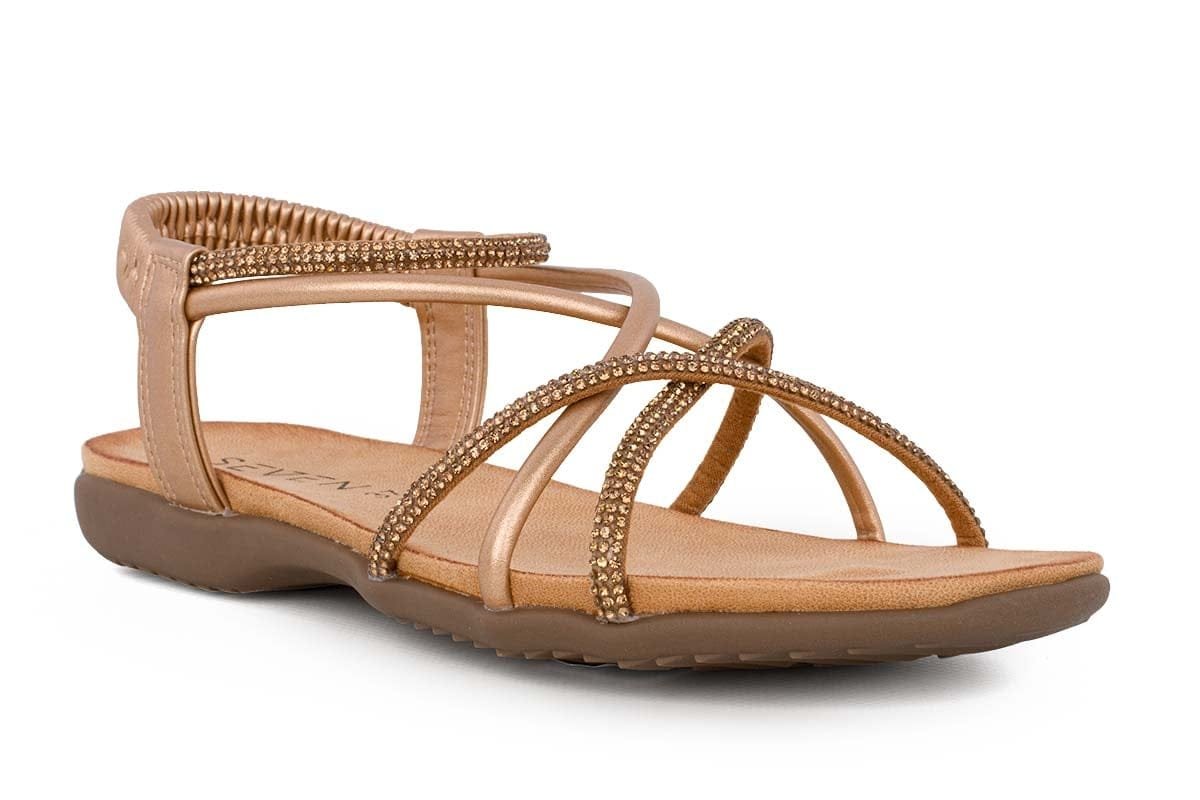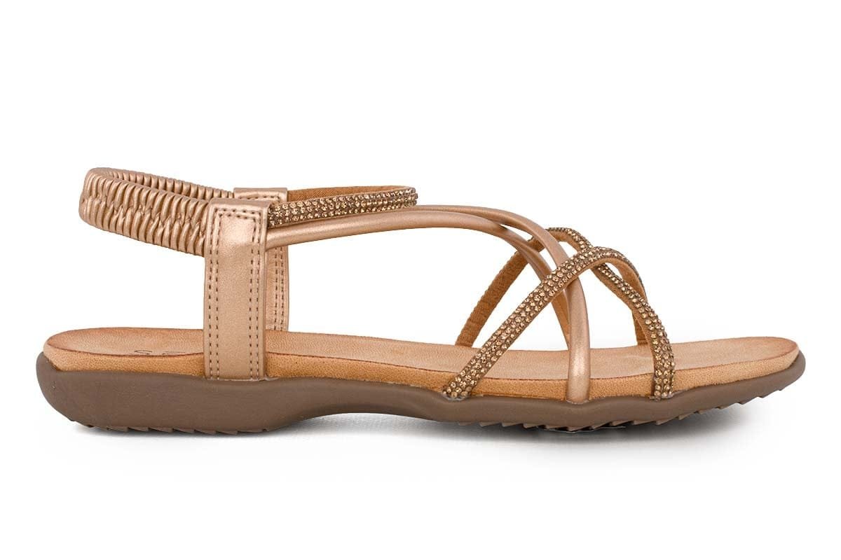 Completa il tuo guardaroba con questi iconici sandali bassi Exé. Il loro design color cammello, impreziosito da perline decorative, li renderà il pezzo forte della stagione.