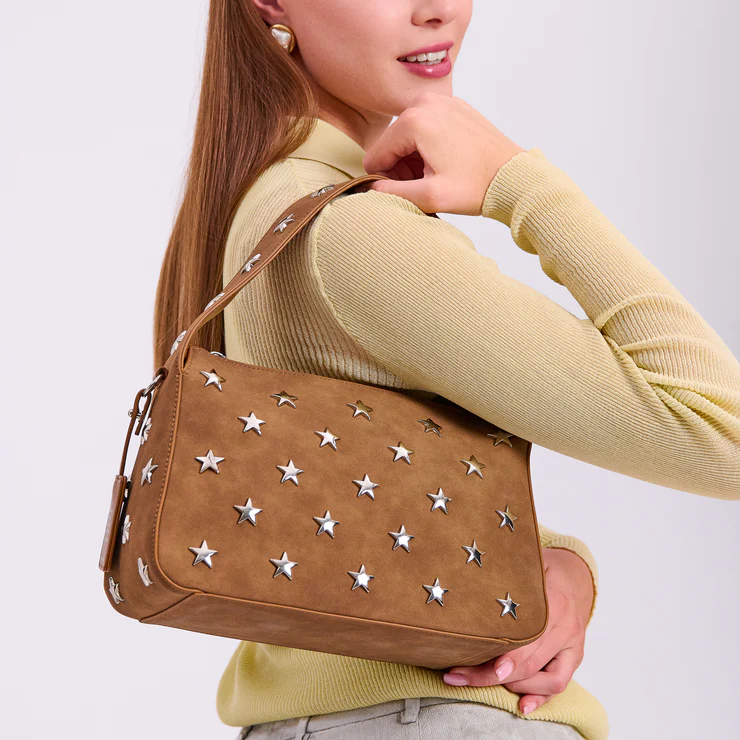 Borsa a spalla di medie dimensioni con borchie in metallo a stella