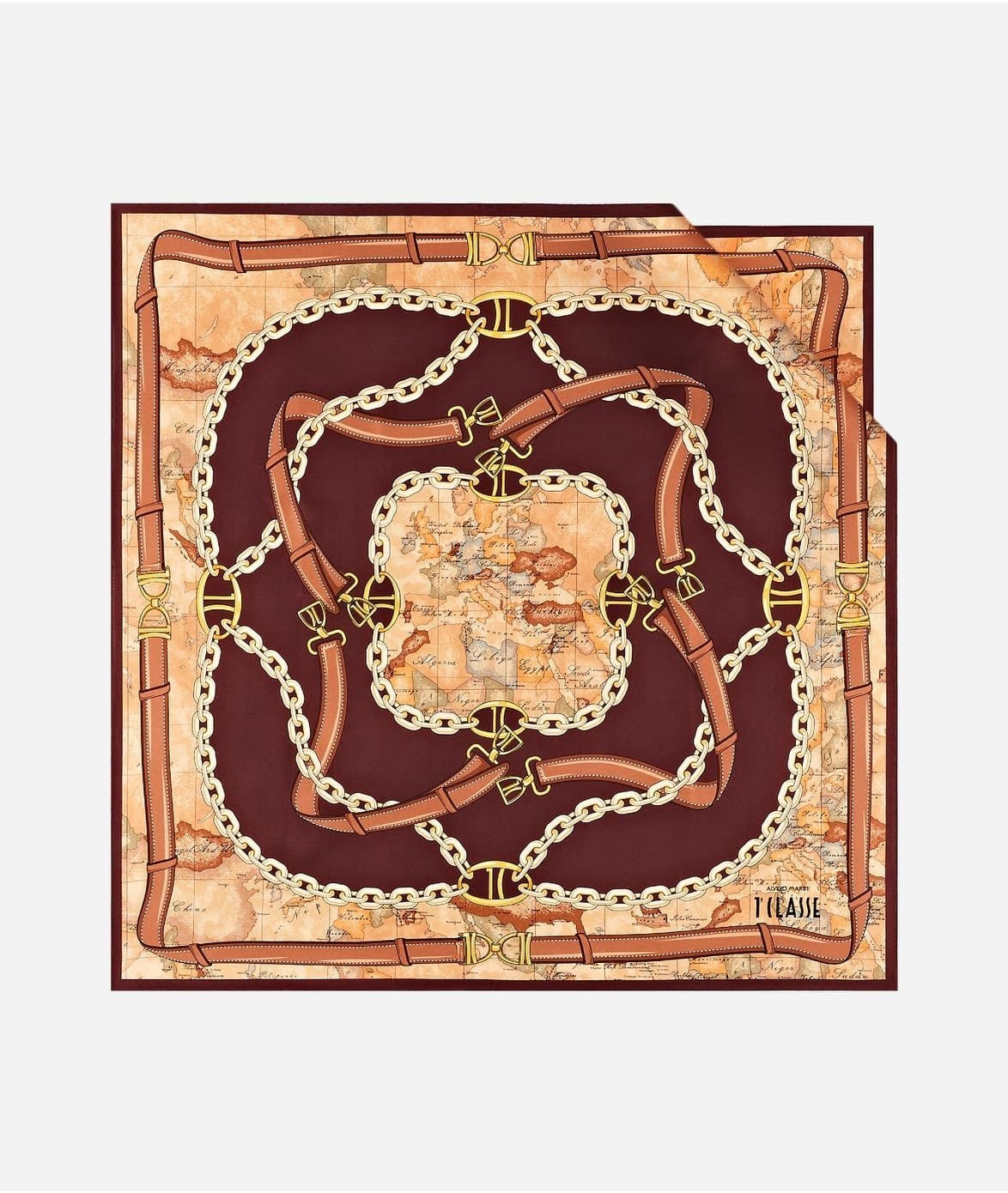 La nuova stampa ispirata al mondo della selleria rende elegante e sofisticato questo foulard in seta. Disponibile in tonalità autunnali raffinate e di tendenza, è perfetto per elevare con un gesto gli outfit basic e per impreziosire le borse di Collezione.