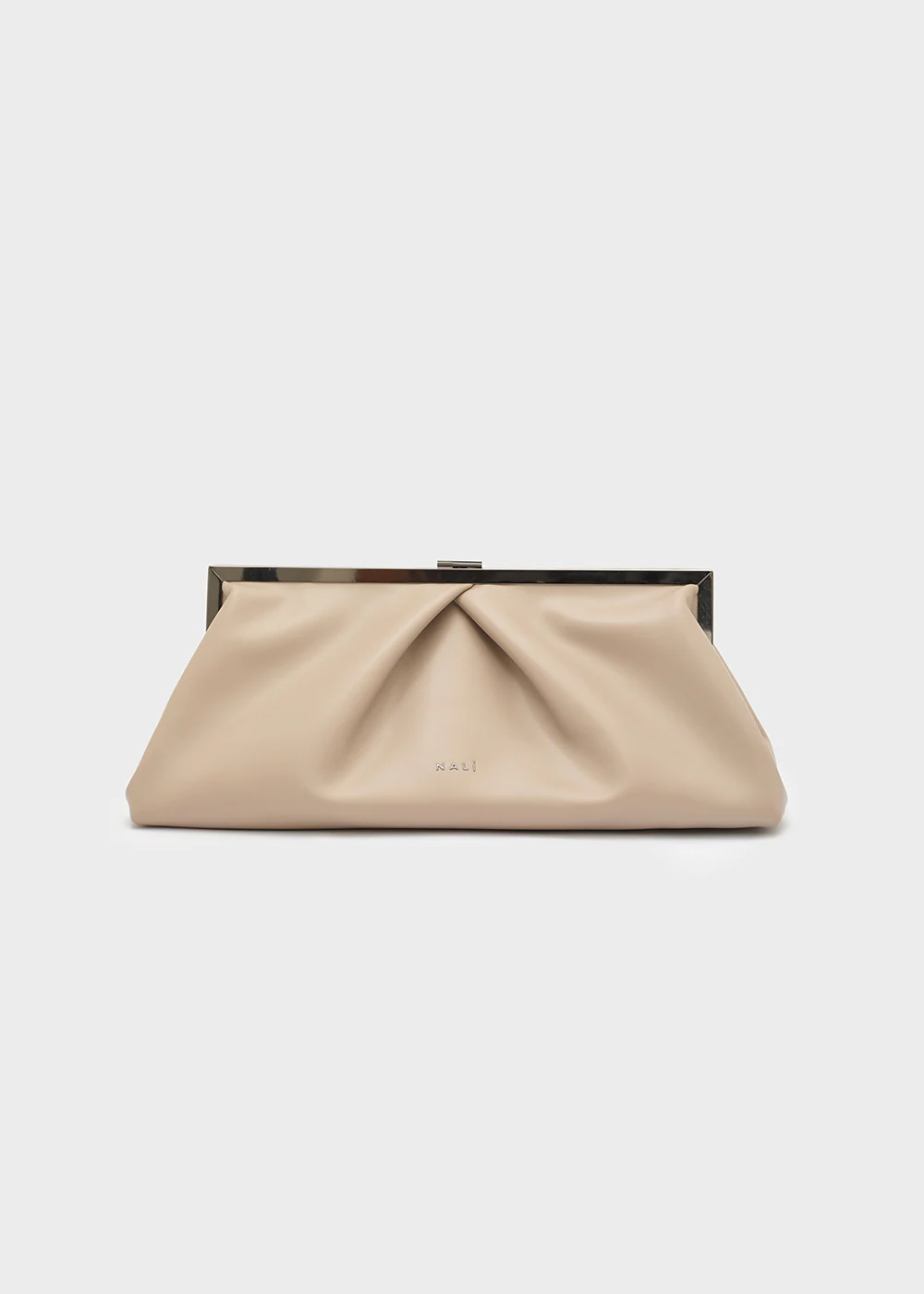 Clutch rettangolare in ecopelle con cornice dorata, dallo stile sofisticato.