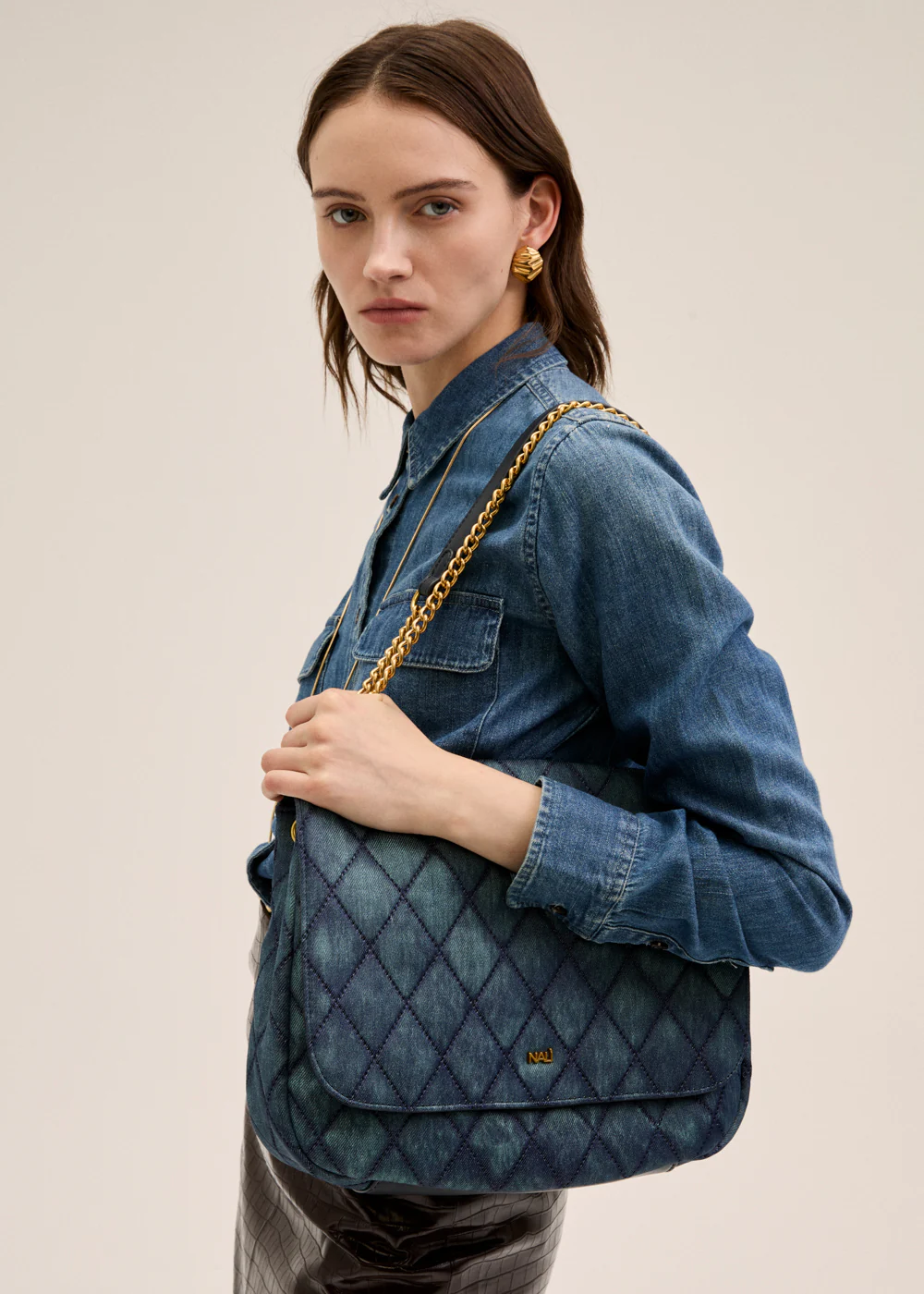 Borsa a spalla con lavorazione trapuntata e catena doppia, pensata per chi cerca un accessorio elegante e funzionale. La chiusura con patta e la forma strutturata la rendono perfetta per completare outfit da giorno e da sera con stile.