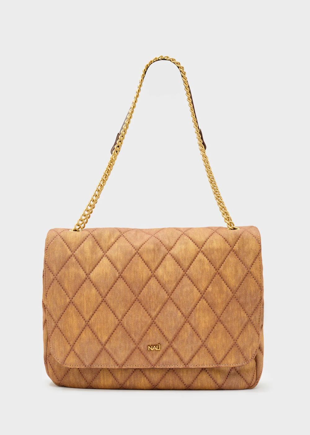 Borsa a spalla con lavorazione trapuntata e catena doppia, pensata per chi cerca un accessorio elegante e funzionale. La chiusura con patta e la forma strutturata la rendono perfetta per completare outfit da giorno e da sera con stile.