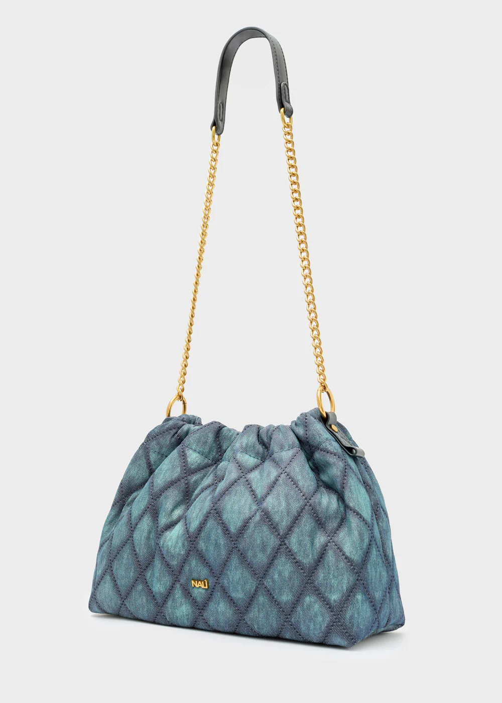 Borsa morbida con lavorazione trapuntata, caratterizzata da un design ampio e capiente. La tracolla con catena dorata e inserto in ecopelle offre un tocco raffinato, ideale per un utilizzo quotidiano dal gusto sofisticato.