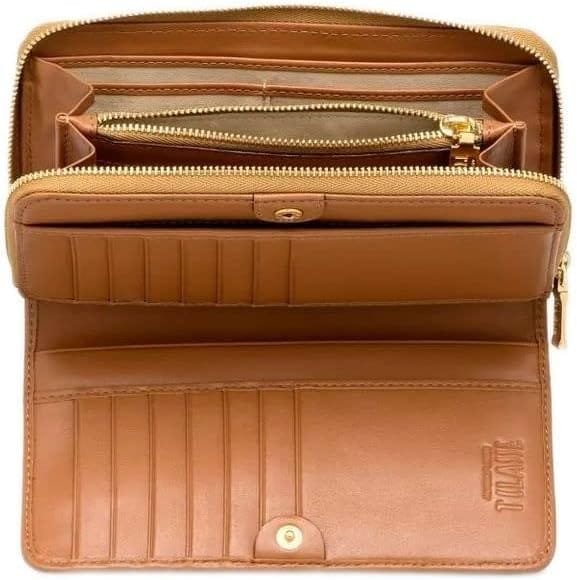 Tasca zip around con due scomparti per banconote, sei scomparti per carte di credito e quattro scomparti per ricevute