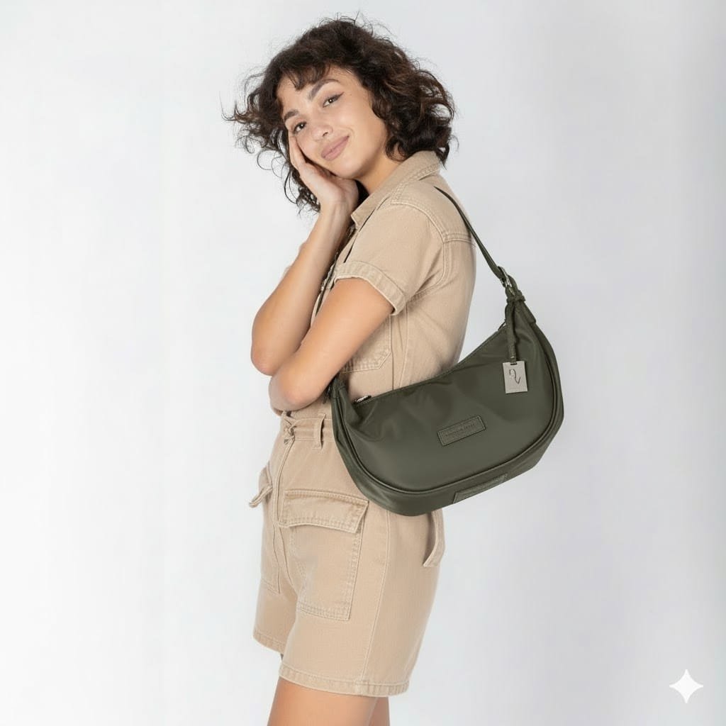Borsa Hobo Media in Nylon e Pelle con Tracolla Lunga, Linea Giudecca